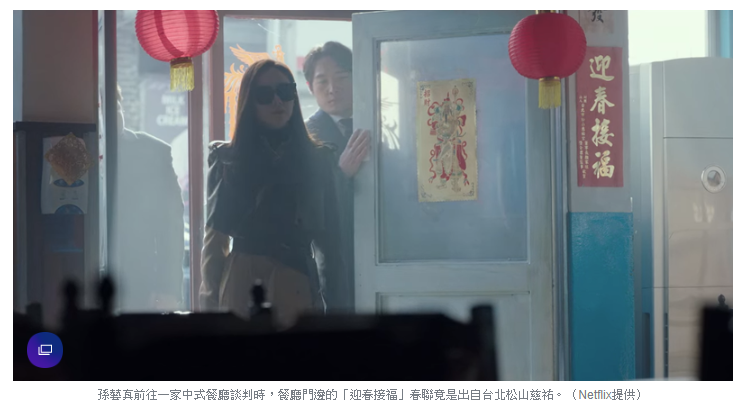 而其中特別讓台灣粉絲驚喜的是,在第12集中當孫藝真前往一家中式餐廳談判時,餐廳門邊的「迎春接福」春聯竟是出自台北松山慈祐宮,另外又於柱子上有著新莊立基里所贈送的「恭賀新禧」,兩張春聯接連出現相當地吸睛。原來該拍攝地點是位於全羅北道西北部群山市裡最悠久且知名的餐廳,並已被列為韓國國家文化財產,常常租借給電影及戲劇劇組拍攝,有韓國網友詢問之後才得知老闆是道地台灣人,所以出現台灣的春聯也就不意外了。