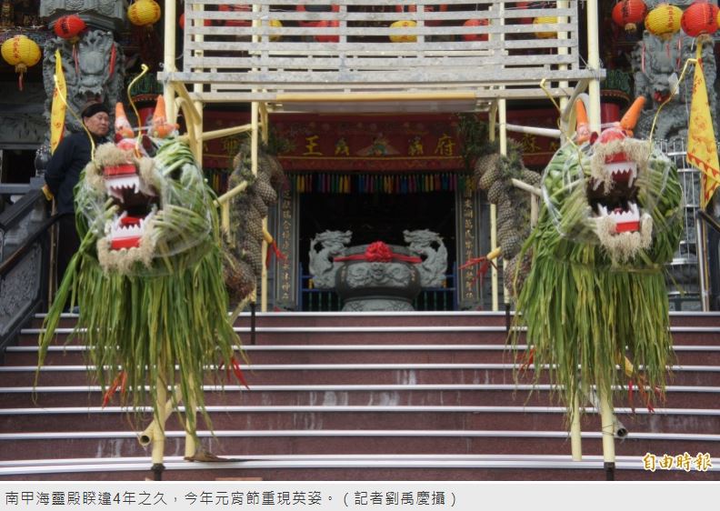 南甲海靈殿元宵慶典,將自2月8日至2月10日一連3天,歡迎民眾前去海靈殿躍龍門、慶元宵、乞求龜、七星爐割鬮保平安,由於蒜也容易乾黃,因此製作團隊元宵當日會進行更換,為時約一個小時,由於海靈殿團隊製作技巧遠近馳名,要以最好的狀態與民眾見面,還應邀遠赴台南正統鹿耳門聖母廟,協助製作水果龍與米包龜。
