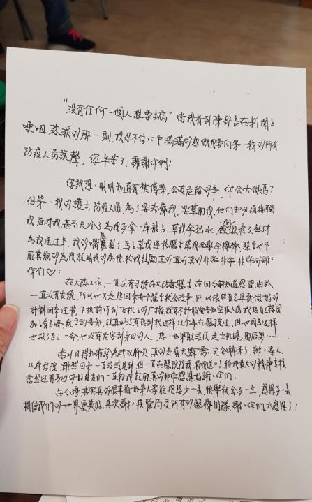 痊癒患者手寫信。(記者簡惠茹攝)