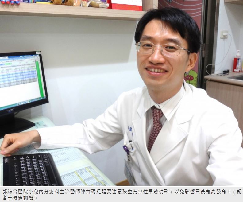 郭綜合醫院小兒內分泌科主治醫師陳首硯提醒要注意孩子是否有性早熟問題?萬一孩子太早出現第二性徵,可儘快帶到小兒內分泌科接受詳細評估與治療。