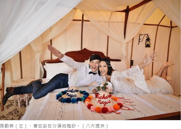《世界第一等》前進撒哈拉沙漠,抵不住美景誘惑,主持人張勛傑竟當下與旅遊達人唐宏安決定「閃婚」,甜蜜拍起婚紗照。原來是製作單位安排浪漫情境,唐宏安逗趣向張勛傑粉絲求饒:「求求粉絲們不要吃醋殺了我!」張勛傑則坦言緊張:「我全身冒汗,刮鬍子還刮到流血。」