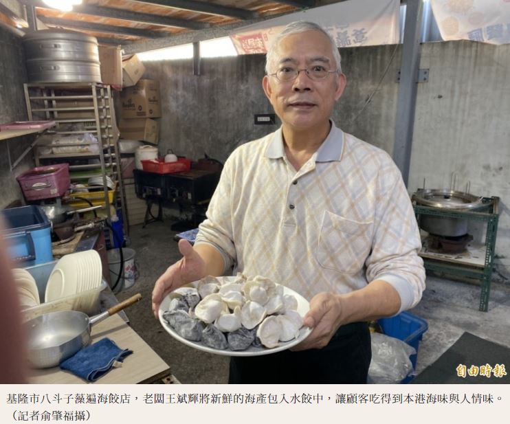 藻遍海餃店的老闆王斌輝說,自己曾經是八斗子在地里長,他們家世代居住在八斗子,當初這海產水餃是往生的太太所研發,想說將在地海產包在水餃中,後來太太往生後,他一度結束水餃店,後來是顧客想吃與朋友鼓勵,他自己也不想讓太太辛苦研發的海產水餃就此消失,所以才又重新出發。