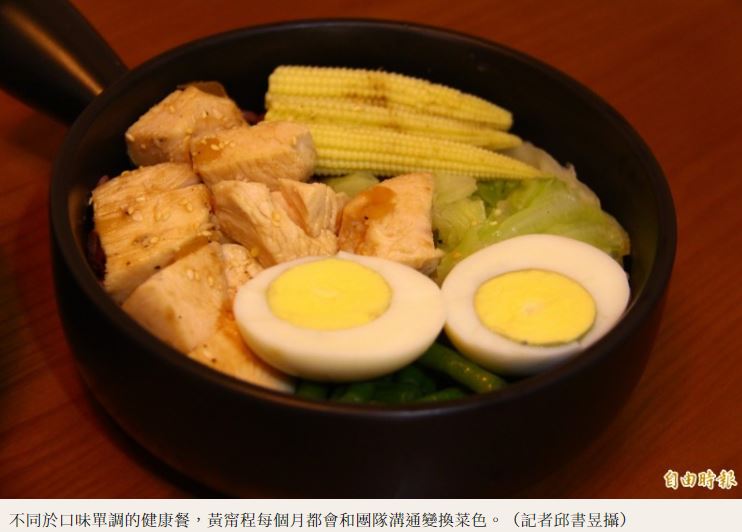 23歲的老闆黃甯程就讀台北大學休閒運動管理學系,本身是健身教練和健美選手。熱愛烹飪的他說,之前在上課備餐時都會替學員們製作一份,沒想到受到熱烈回響,這也萌生創業開店的想法,於是找了一群同學和幾位健身教練、營養師組成團隊,打造兼具營養又美味的菜單。