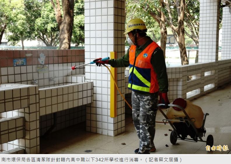 台南市各級學校下週起陸續開學,台南市長黃偉哲指示全力防疫,保護學童安全,台南市環保局今天起由各區清潔隊針對高中職以下342所學校進行消毒,預計2月21日前完成,24、25日各校學生就能進行開學大掃除的工作。