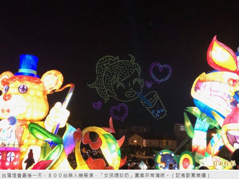 當「2020台灣燈會在台中」開場,民眾驚呼連連,接著「駿馬奔騰在馬場」、「舊山線鐵道后豐鐵馬道」,看到駿馬及自行車竟然會在天空移動,民眾更是歡聲雷動,覺得很不可思議。台灣燈會最後一天,800台無人機展演成功!