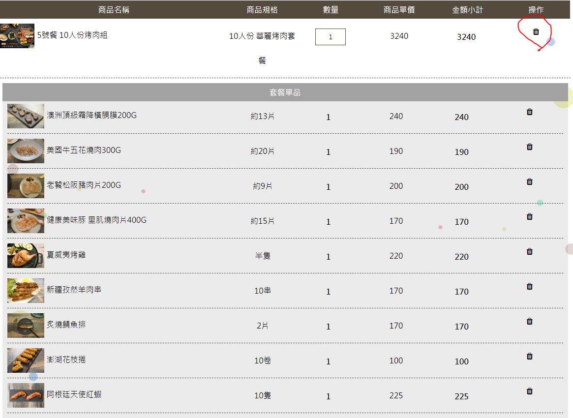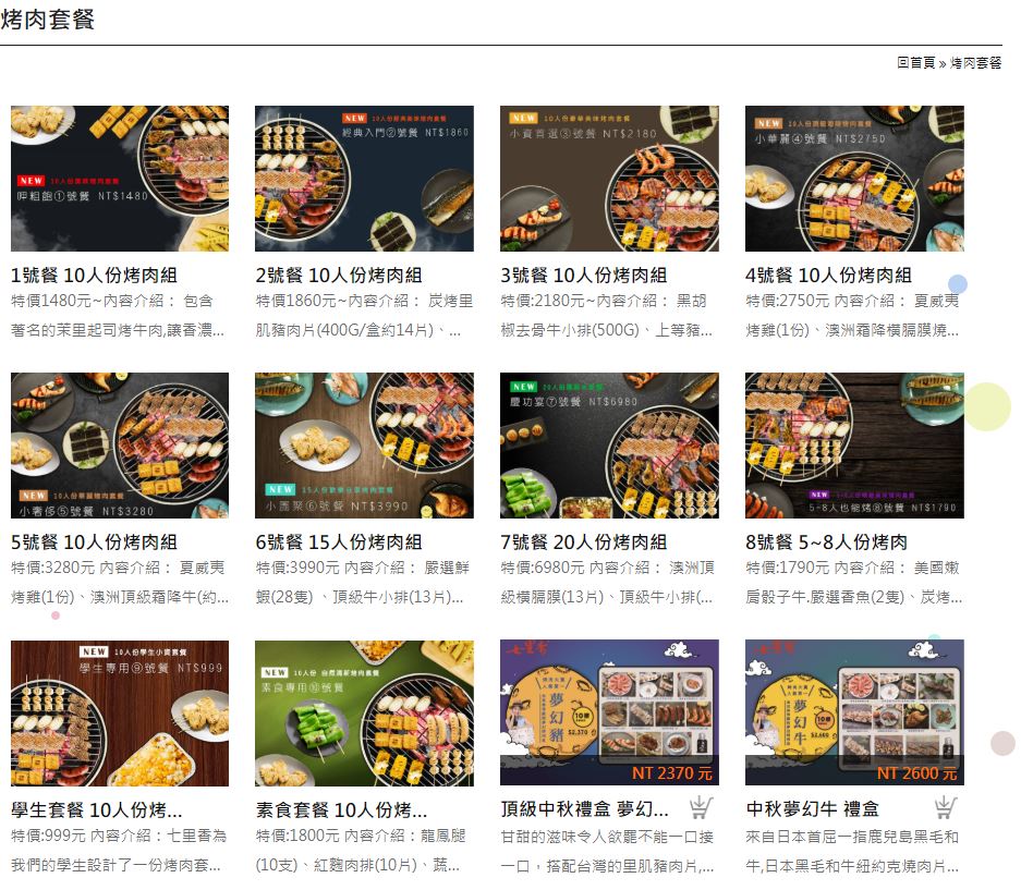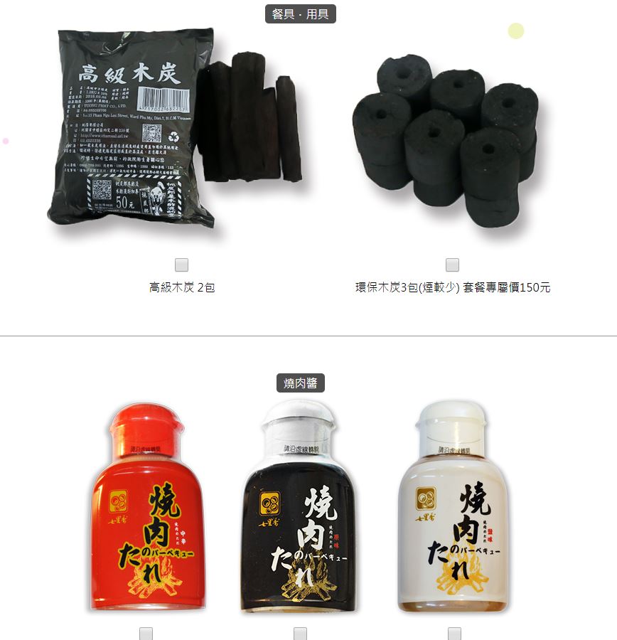 3.選擇想要的套餐或單點,點選進入後並照提醒依序選擇木炭、烤肉醬等