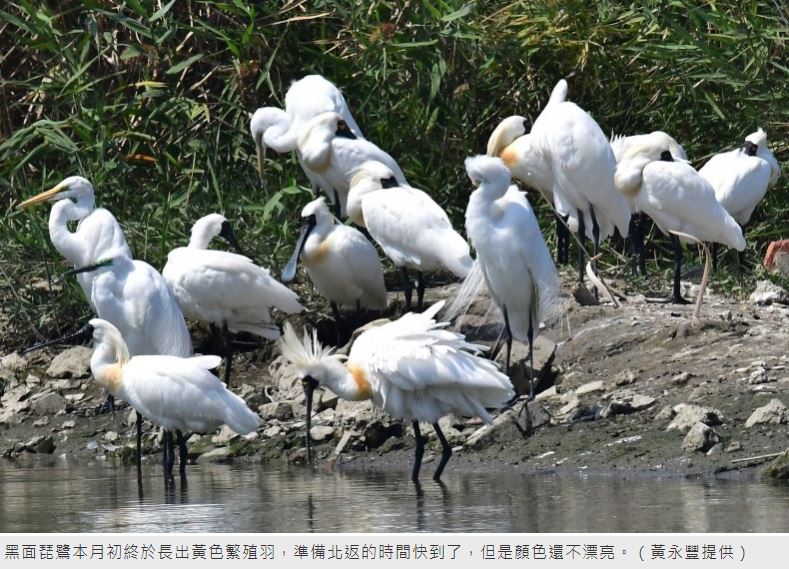來台南度冬的黑面琵鷺本月初終於長出繁殖羽,準備北返,長出繁殖羽的時間比往年平均慢了1個月,謎題待解。