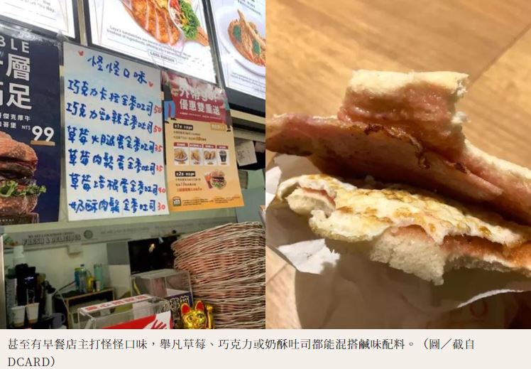 一日之計在於晨,早餐來片果醬吐司是大眾熟悉的滋味,近日DCARD上卻瘋狂討論「邪教吃法」,除了有巧克力混搭薯餅的鹹甜土司,還有草莓醬加蛋加卡啦雞的衝擊滋味,這些早餐店阿姨沒說的隱藏版美味,讓網友紛紛大推:「吃過一次真的會愛上」。