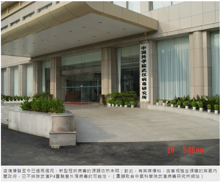 武漢肺炎持續蔓延,疫情爆發至今已過兩個月,新型冠狀病毒的源頭依然未明;對此,有英媒爆料,由首相強生(Boris Johnson)領導的英國內閣政府,已不排除病毒可能是武漢P4實驗室外洩。