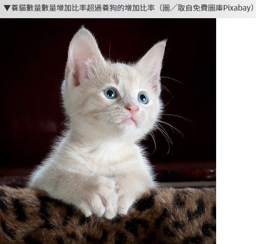 就寵物的類型最常見的還是貓與狗,根據農委會調查統計推估,2017年底家犬飼養數量178萬隻,家貓為73萬隻,其中家犬僅略較2013年增加2%,家貓數量則成長27%,主因都會生活型態增加,公寓大廈較無法提供犬隻所需活動空間所致。