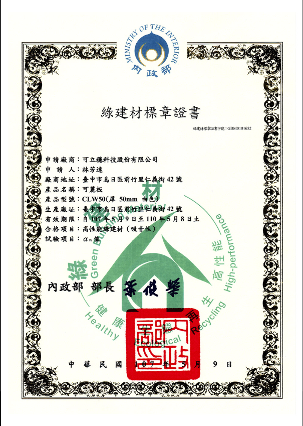 - 環保標準:符合政府規定的綠色建材標章、保證可以回收利用