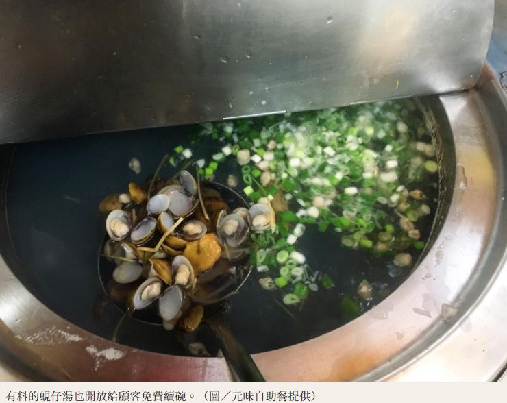 除了每位顧客限取一份主菜,另外有四樣蔬菜隨民眾享用,吃完可以再夾取但不提供外帶,白飯、紅茶、湯品也都能續碗續杯,老闆還透露有些菜是自己種的,偶爾會煮上一鍋豐富的蜆仔湯,讓大家用少少的錢吃得滿足又開心,超划算價格也成功吸引附近學生、勞工族群搶著來報到!