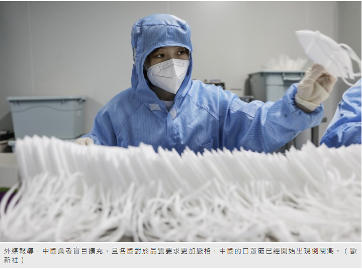 武漢肺炎疫情禍及全球,病毒起源地中國在各國需求物資孔急下,藉由提供醫療物資展開「大外宣」,不過屢被踢爆品質低落或不合格。外媒報導,因為中國業者盲目擴充,且各國對於品質要求更加嚴格,中國的口罩廠已經開始出現倒閉潮。