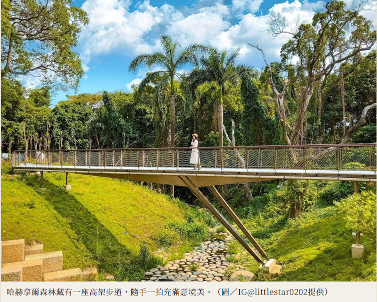 台南新地標「竹溪水岸園區」被譽為台版清溪川爆紅,附近的台南體育公園,也被網友發現一座隱藏版秘境「哈赫拿爾森林」,不只環境神似都市熱帶雨林,還有沙坑溜滑梯、高架步道、動物打卡地標等,來這呼吸芬多精、暢遊森林樂園超愜意!