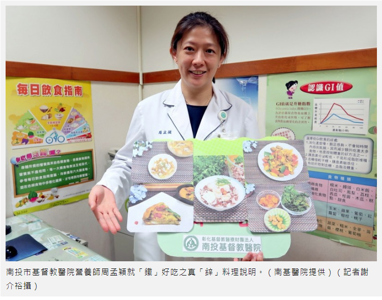 在此前提下,南投市基督教醫院在母親節前夕,為了向偉大的媽媽獻上最虔誠的祝福,特別利用常見的食材示範3菜1湯料理,讓媽媽們「補鐵加鋅」,吃的健康又安心。