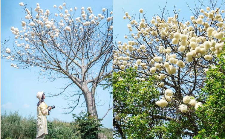 目前於雲林高鐵附近以及嘉義大學民雄校區,都能見到棉花糖樹的蹤跡,無論是單拍雪白花球、或是站在花樹下拍照都能輕鬆捕捉唯美照,仔細觀察地上還能看見薄薄一層棉絮地毯,可趁著果實正茂密的時刻,前往欣賞季節美景。