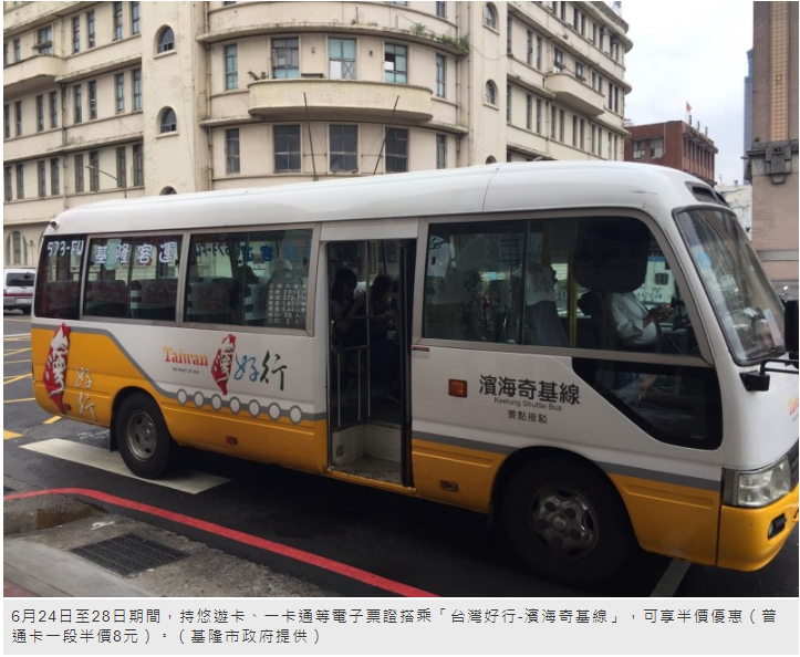 疫情趨緩,基隆市政府搶攻端午連假國旅市場商機,台灣包車今天宣布24日至28日期間,持悠遊卡、一卡通等電子票證搭乘「台灣好行-濱海奇基線」,可享半價優惠(普通卡一段半價8元),邀請遊客到基隆輕鬆過端午。