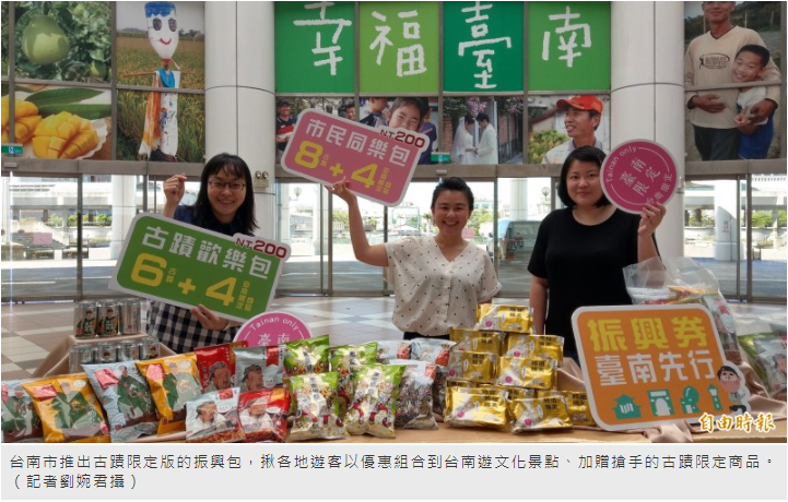 古蹟限定版振興包分為買8送8、買8送4及買6送4等方案,8處景點包括赤崁樓、安平古堡、安平樹屋、億載金城及1661台灣船園區、台南山上花園水道博物館、台南左鎮化石園區、水交社文化園區,加贈的則均是台南古蹟限定商品,相關活動訊息可上台南市政府文化局網站