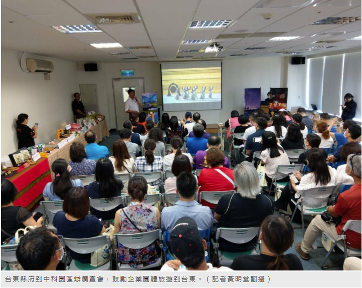 武漢肺炎(新型冠狀病毒病,COVID-19)疫情趨緩,台東縣府主動出擊前往外縣市舉辦廣宣會,第一場次已在中部科學園區舉辦,接下來將於新竹科學園區及內湖科學園區再舉辦二場次說明會,主攻各企業福委會幹部,刺激團體旅遊。