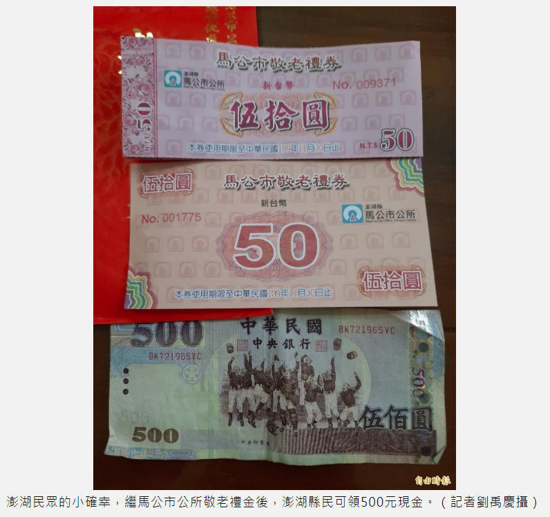 由於疫情爆發以來,中央紓困專案多如牛毛,又設限許多,讓民眾看得到吃不到,引發各界怨言,馬公市公所率先發行敬老消費券,刺激北辰市場及文澳市場消費商機,因成效良好,普獲各界好評,澎湖縣議長劉陳昭玲提出普發500元消費券,獲得縣長賴峰偉支持,府會攜手推動。