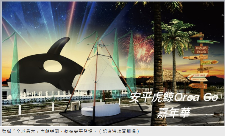 台南市長黃偉哲六月19日預告這隻將矗立在安平水面的安平虎鯨,造型可愛又親和力,長度20公尺、10公尺巨大體型,是全球最大虎鯨裝置藝術,首度為台南量身打造拜訪台南,現場將搭配大型海上氣墊樂園、遊樂設施,以及異國度假風情的小木屋,夜間璀璨燈光煙火秀,展覽將至10月18日,10月10日台南又有國慶煙火,不論國慶煙火在哪裡,都是在台南,越夜越美麗。