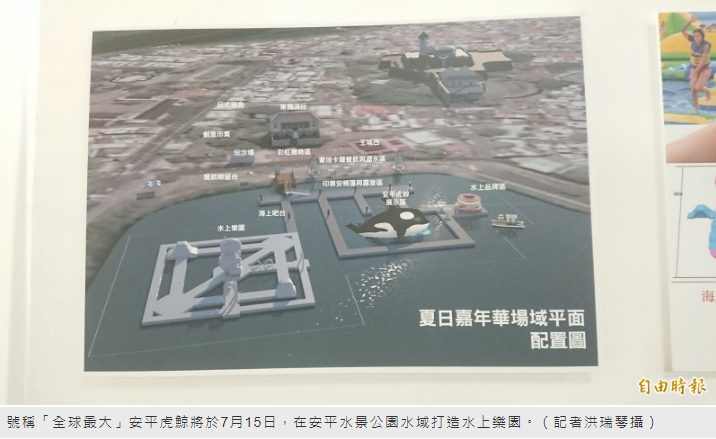 至於民眾關心的票價,台南市文化局長葉澤山表示,市府計畫經費200萬元,招標合作廠商2000萬元,因為考量人流管制維護措施,只要振興券1張200元,不限人數進場,如果要進入水域玩遊樂設施,預計門票每人150元,而且虎鯨每晚都有燈光秀,民眾不用花錢租車就可在周邊欣賞到美景,白天夜晚打卡新熱點,希望能為以往入夜後就寂靜安平聚落,帶來新氣象。