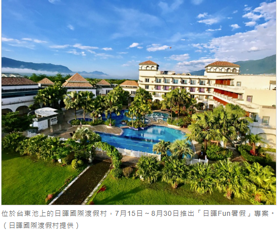 花東地區成為民眾國旅最熱門首租車選,台東唯一五星級飯店的日暉國際渡假村特別推出「日暉Fun暑假」專案,7月15日~8月30日,4人成行3天2夜含早午晚餐、單車券、池上周邊景點特色天牛號行程等,再加贈熱氣球嘉年華-鹿野高台專車來回接駁,平均每人每晚只要2,502元起,每房可再招待2位6歲以下孩童免費入住。