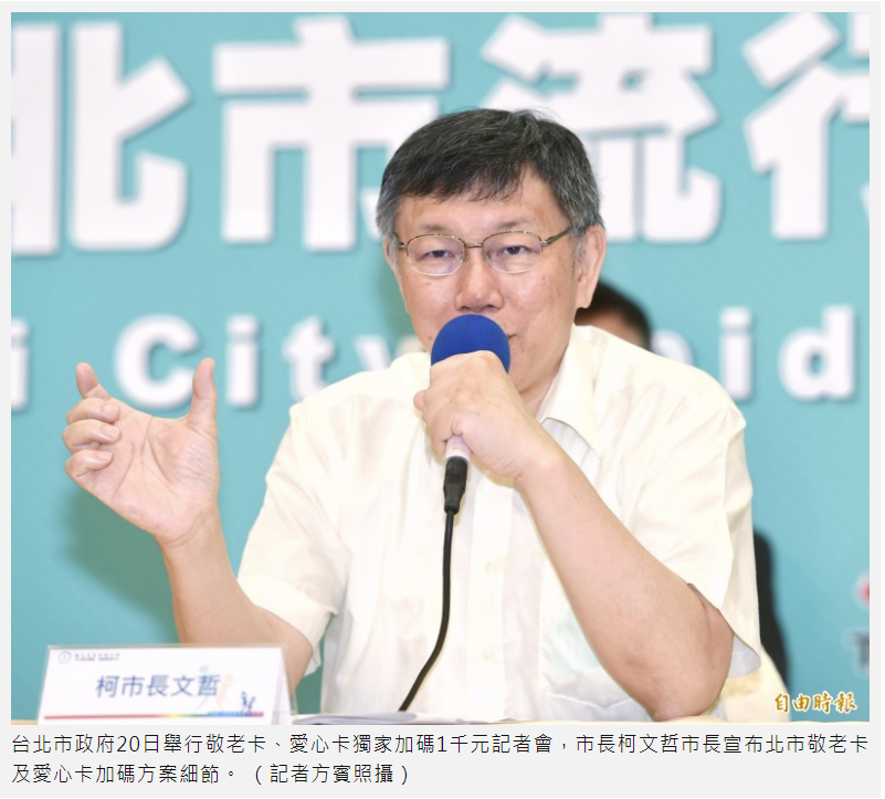 不過柯市府力推悠遊付政策,敬老卡、愛心卡仍為實體卡片,似乎有所衝突?柯解釋,如果是學生卡,就是一卡一付,但一下子就要長者使用電子支付比較困難,所以還是先從實體卡片加碼開始。