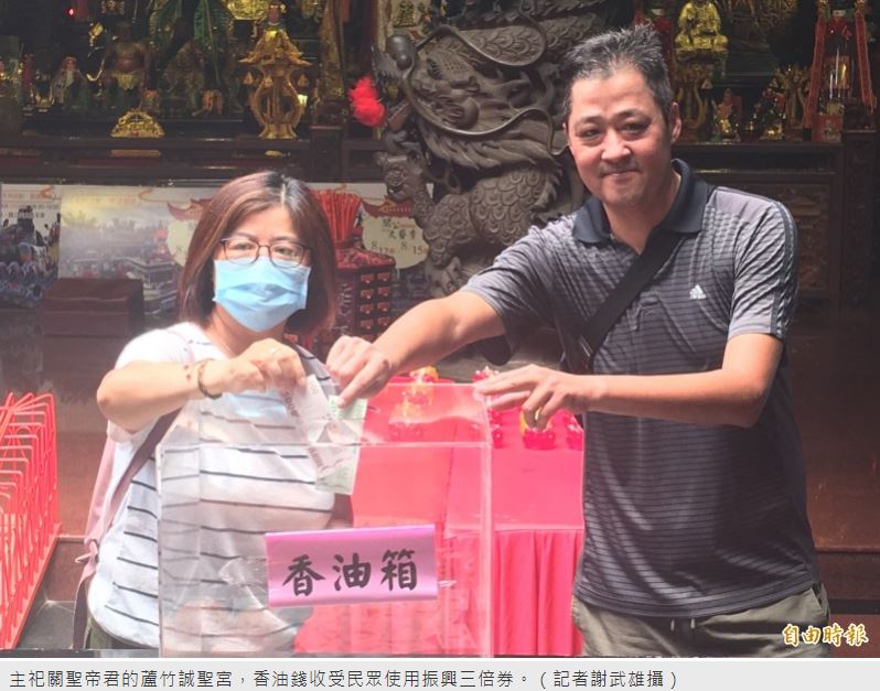 13日(農曆6月24日)為關聖帝君誕辰,主祀關聖帝君的蘆竹誠聖宮也舉辦一系列關公藝文季活動,明天登場的是「神禧夜巡遶境」活動,關聖帝君在100多輛藝閣車、陣頭護駕下,在蘆竹山腳地區8個里繞境,值得一提的是,為響應政府三倍振興劵政策,點燈祈福600元只要500元振興券支付即可,還可獲贈價值上千元禮品,另香油錢也接受振興三倍券。