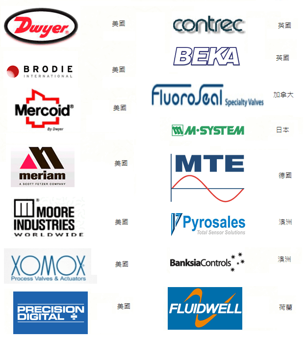 目前代理品牌國家:Dwyer專業代理 等美國品牌、英國、日本、荷蘭、澳洲、加拿大