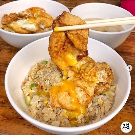 主打邪惡「爆漿」的蛋炒飯在IG掀起一股洗版熱潮!鄰近裕誠夜市的炒飯專賣店,提供泰式打拋、韓式泡菜、印度咖喱等多樣口味的炒飯,並搭配高麗菜、蔥花、空心菜和肉絲等豐富配料,每份80元,而最大亮點在於炒飯上的三顆金黃炸蛋,輕輕戳破立刻有蛋液緩緩流出。