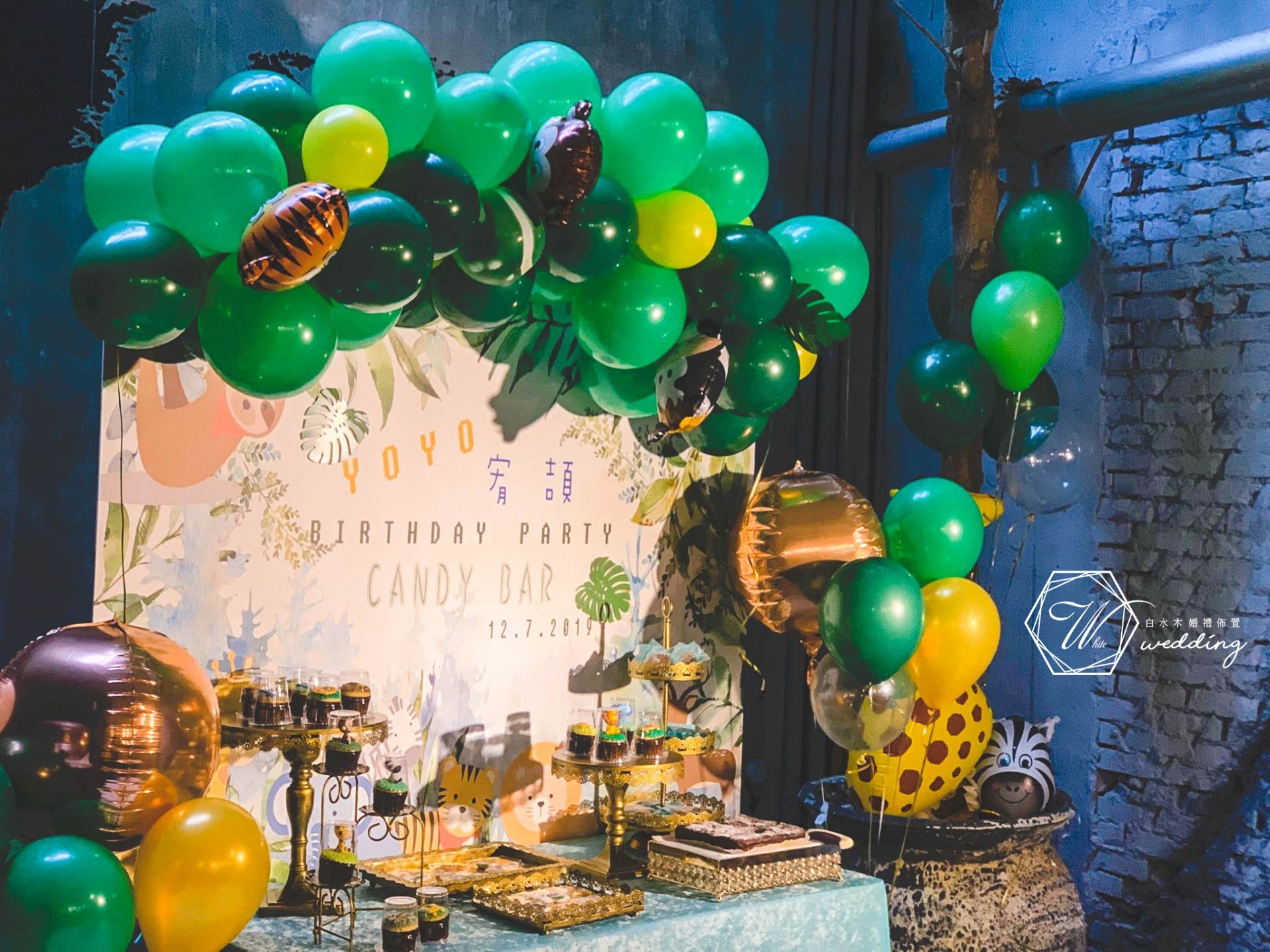 Candy bar佈置和甜點設計,搭配氣球/背板/花藝設計,派對佈置讓大家一進到會場就 有「哇!」的驚呼,讓氣氛在一秒內升溫,賓客開心之際,給足了主辦人面子。
