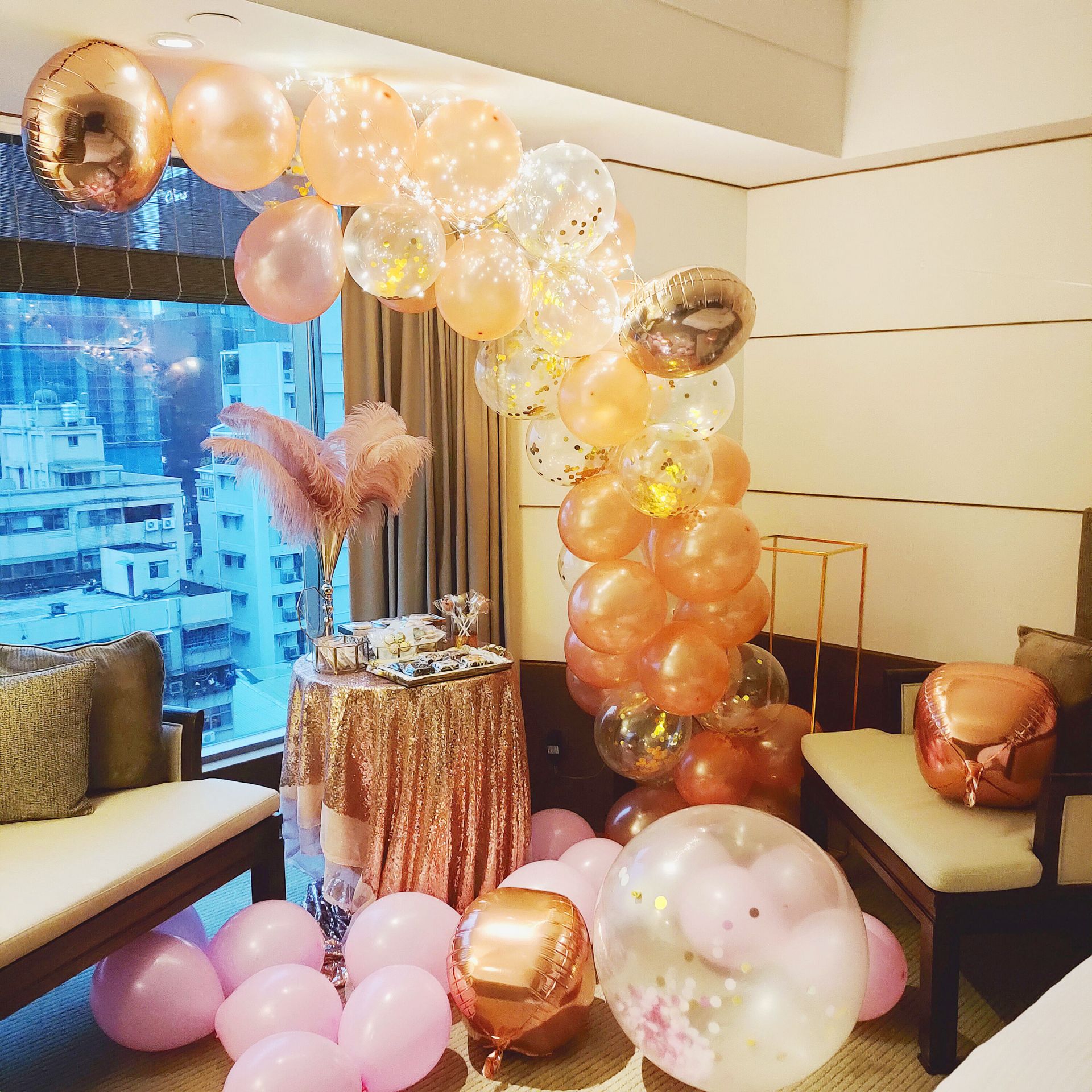 經過實際討論過後依照佈置內容(如:背板/氣球/花藝)和食物品項數量做費用增減