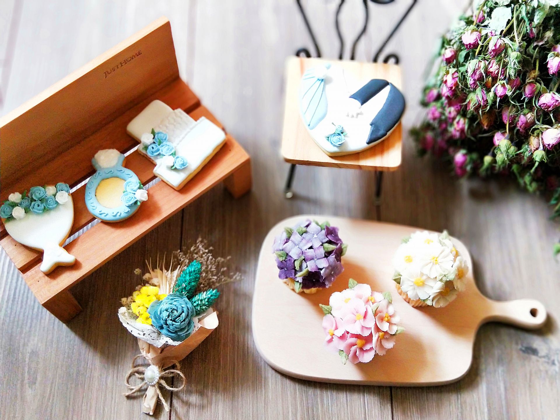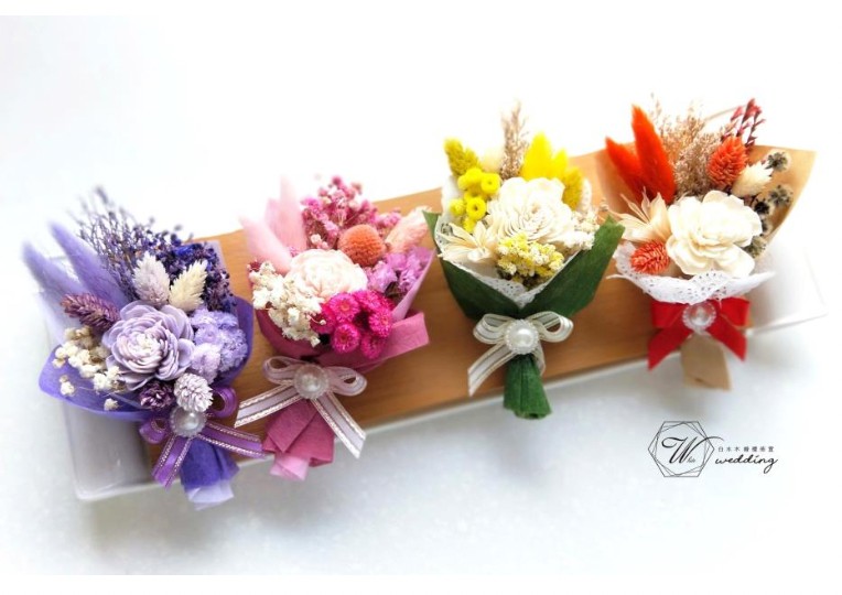 白水木婚禮佈置的創辦人:「乾燥花可創意設計多元商品,不單是新娘捧花,胸花, 手挽花等等...我們都可依照新人的需求,客製手工乾燥花小物」