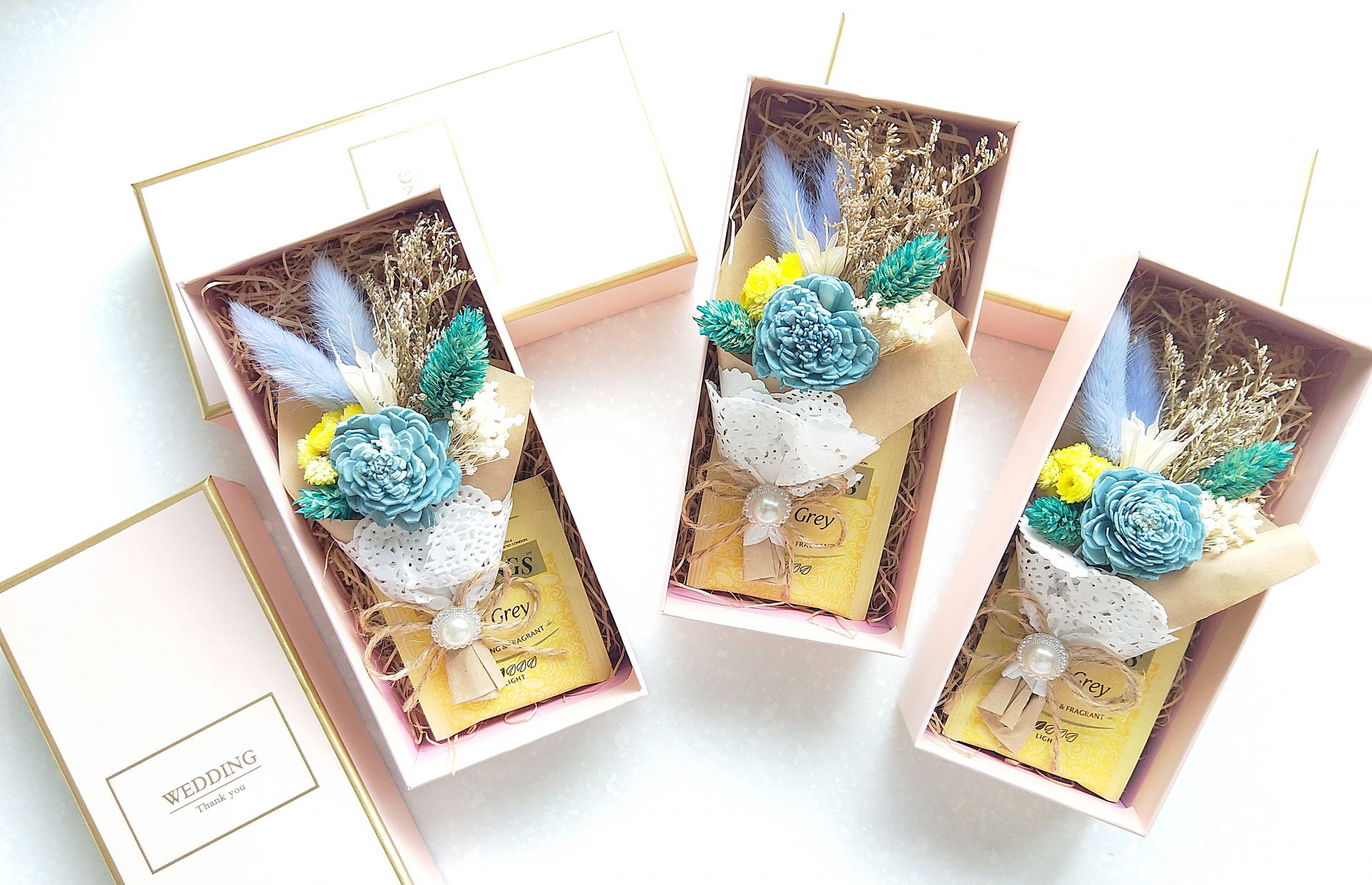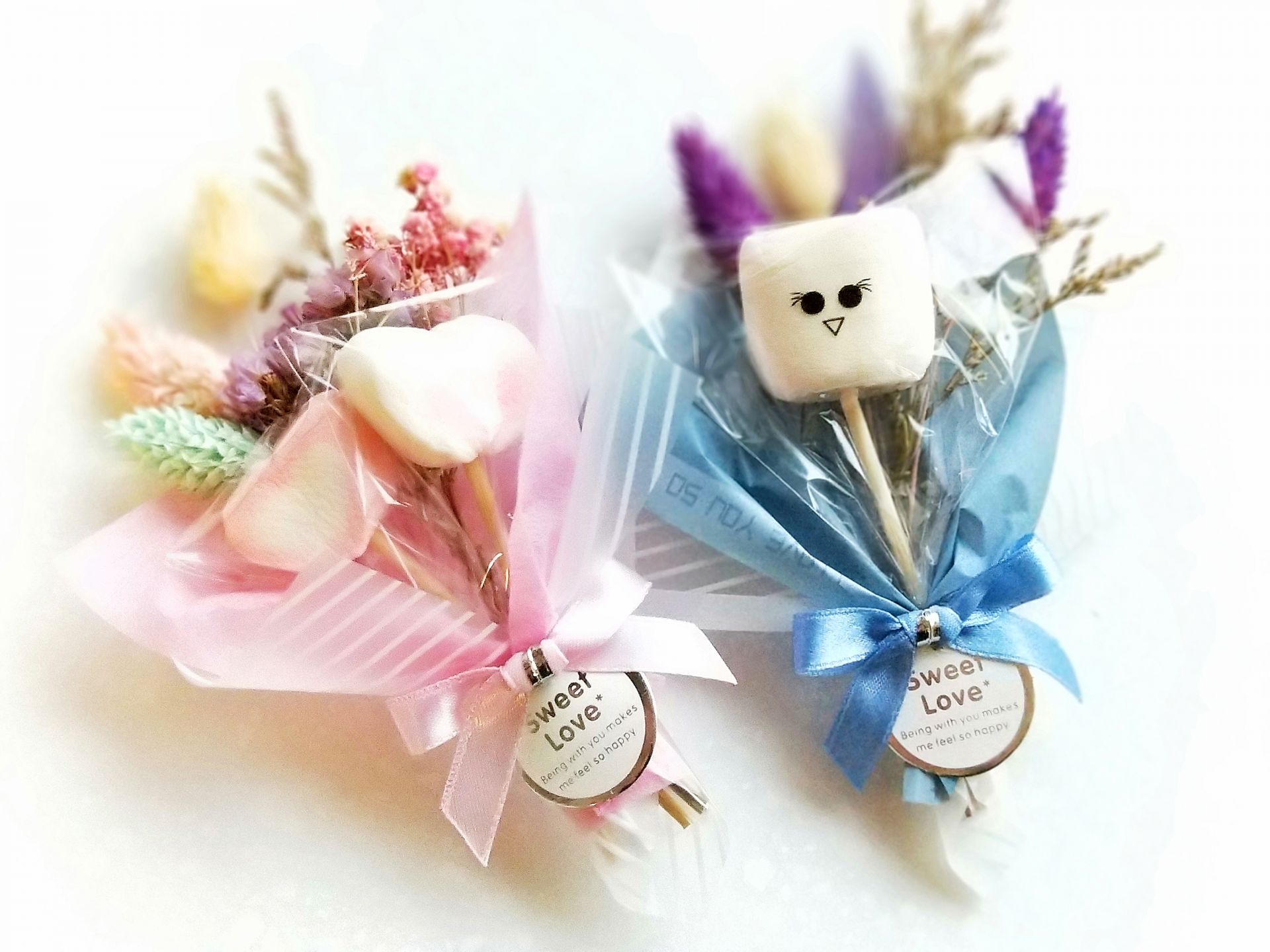 不僅Candy bar可做婚禮小物,結合乾燥花搭配喜糖,製作可愛的乾燥花婚禮小物