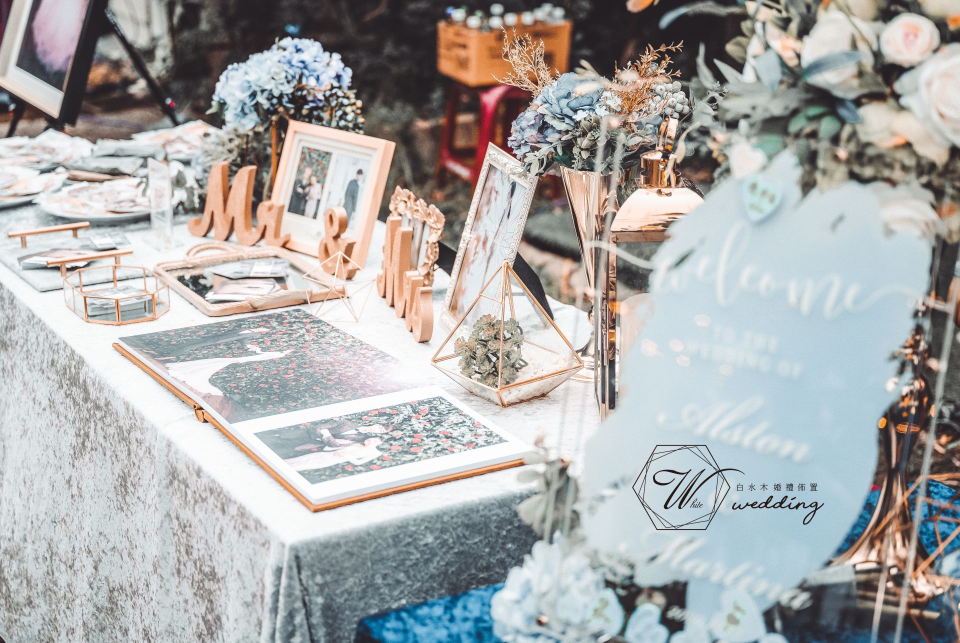 「我們的設計不單只是集合美麗的元素而已,靈活豐富的設計才是我們為佈置注入靈魂的關鍵。」白水木婚禮佈置的創辦人:「不斷吸收與創新設計手法,確保每一件成品都是獨特而有紀念價值的。」