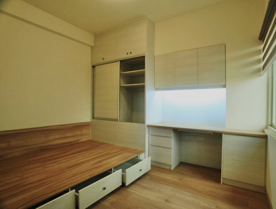使用高雄系統櫃部分的配置可以說是整個空間功能的關鍵,依照個人習慣或辦公需求來設計是最合適的,系統櫃有個很棒的優點,就是與牆壁貼合,穩固性十足,在台灣這樣容易發生地震的區域非常適合使用。在選擇櫃體配置時,要不要門也是一個值得預先思考的部分。