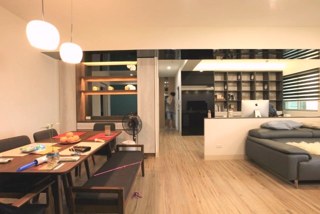 喬群的設計師非常擅長以櫃體和桌體,取代實際牆面或屏幕,在同個空間內創造分隔感,在視覺上可以有空間較大的寬敞感覺,同時也提高了機能性和動線流暢性。