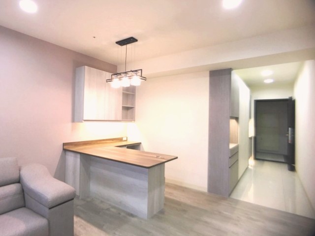 ↓在玄關走廊具加深櫃體、配置L型吧檯桌營造空間分區的感覺