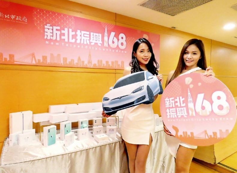 市府經濟發展局商業發展科長李青娟表示,新北振興168活動,在每個月的月底舉辦抽獎活動,總計5波抽獎,昨天是第1波,第2到第4波抽獎是9月、10月、11月的月底,第5波的12月底將加碼抽出1輛價值331萬元的特斯拉Model X,民眾只要在新北市境內消費滿200元,就可上網登錄參加抽獎,活動詳情到「新北振興168」網站或「來趣新北金發局」臉書粉絲團查詢。