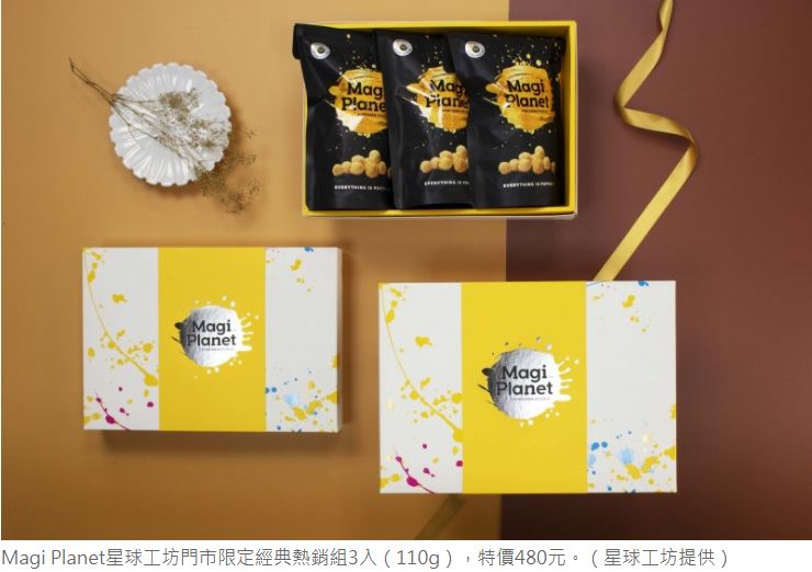中秋節將近,星球工坊推出「官網獨家-歡樂分享盒」(特價349元), 包含「玉米濃湯」、「焦糖咖滋」、「特濃起司」、「雙色地瓜」爆米花,口味豐富多元且價格好入手。此外,Magi Planet星球工坊門市另有2款禮盒方案「經典熱銷組」(特價480元)與極致中秋組(特價580元),即日起全台門市、官方網站限量販售中。
