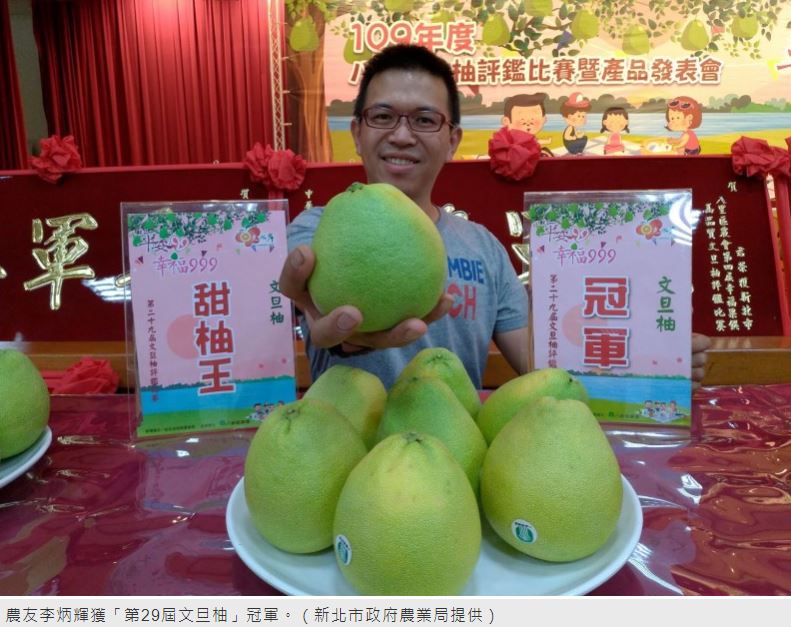 新北市八里區農會辦理「第29屆文旦柚」及「第4屆幸福果饌」評鑑比賽,分別由農友李炳輝及黃志暐拿下冠軍殊榮,此外,李炳輝的父親李清長也獲得今年甜柚王頭銜,甜度高達14.05度。農業局表示,文旦柚產季開跑,即日起可在電商平台「小農電舖直銷站」以及八里區農會門市購買,另可搭配柚香券消費拿優惠。