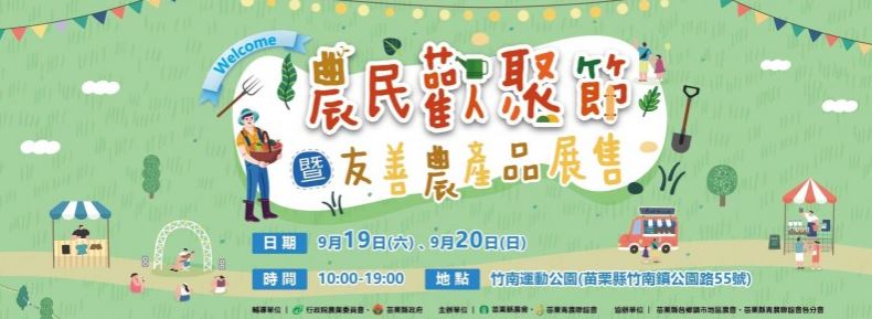 苗栗縣積極推動地方創生、農村再造,近年來帶動許多年輕人返鄉從農,傳統農業也因青農的無限創意注入了新的活力與外觀,從友善種植、包裝設計、行銷通路等,加上縣府推動青年品牌「菁市集」,大幅提升在地農產品質,苗栗青農們將於19、20日在竹南運動公園鎮立游泳池旁辦理大型農產品展售會「農民歡聚節」,歡迎大家前往逛市集、挺青農。