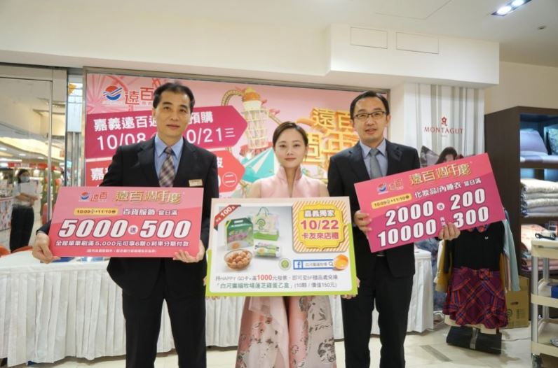 搶攻後疫情時代商機,嘉義地區百貨週年慶陸續登場,老牌的遠東百貨嘉義店雖然最晚起跑,為搶攻國慶連假商機,8日起推出週年慶預購化妝品、內睡衣、百貨服飾,消費滿2000元送200元、滿5000送500元等各項好康回饋,凡持三倍券全館消費滿3000元送300元抵用券,為週年慶炒熱買氣。