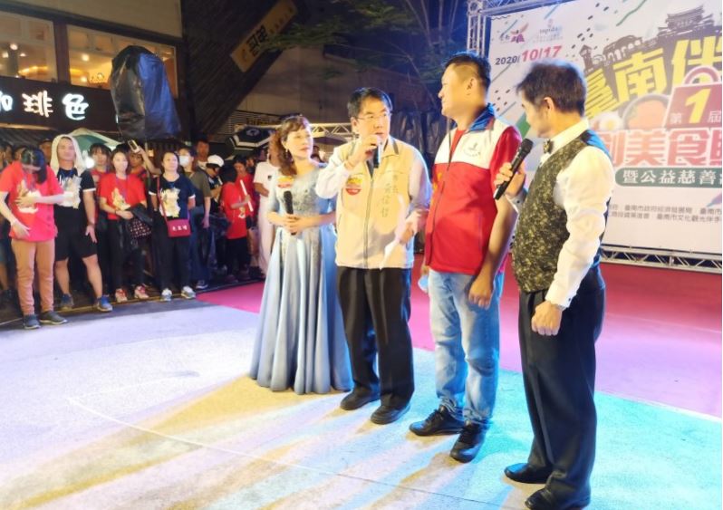 由南市府與台南市文化觀光伴手禮產業發展協會合辦「第一屆台南伴手禮文創美食購物節暨公益慈善活動」,今晚(17日)在海安路熱鬧登場,計有50攤美食、文創及伴手禮特色攤一同參與。市長黃偉哲再度化身最強推銷員,大力推銷在地的文創商品、伴手禮。