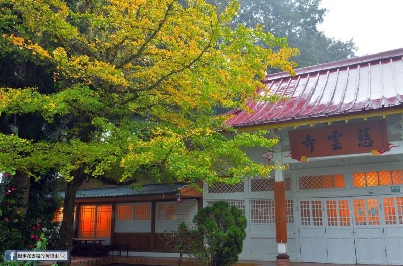 阿里山慈雲寺的銀杏號稱全台最漂亮銀杏,根據阿里山達人黃源明數十年的觀察記錄,依照往年的平均值,阿里山慈雲寺的銀杏每年11月中旬開始轉成金黃,直到12月中下旬結束,目前已經開始變色了,景致美不勝收。