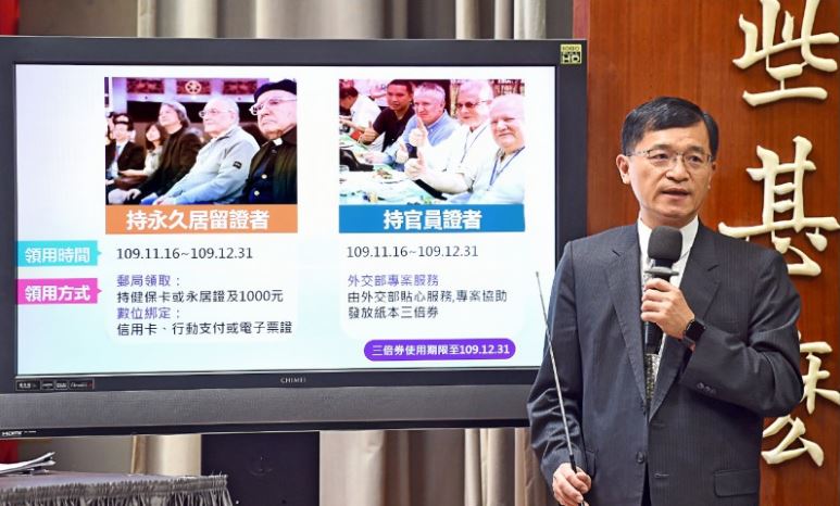 經濟部指出,持有永久居留證者,可以持健保卡或永居證及一千元到郵局領取;持官員證者則由外交部專案協助。