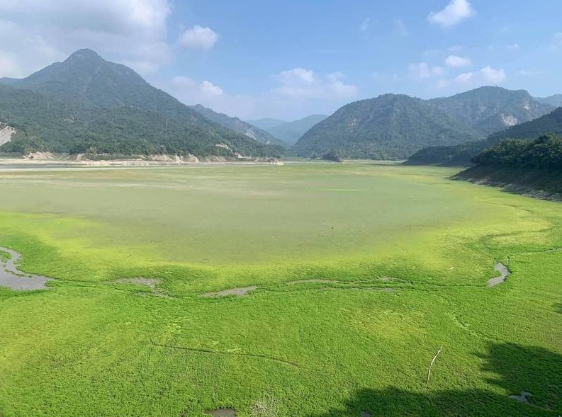 今年沒有颱風為台灣中南部水庫集水區帶來豐沛雨量,致台灣最大水庫曾文水庫蓄水率剩2成2,大半庫底浮現、長滿青草,宛若是一望無際的大草原。網友看到空拍圖,打趣說是天然高爾夫球場,相招去打小白球,其實是缺水的慘況。