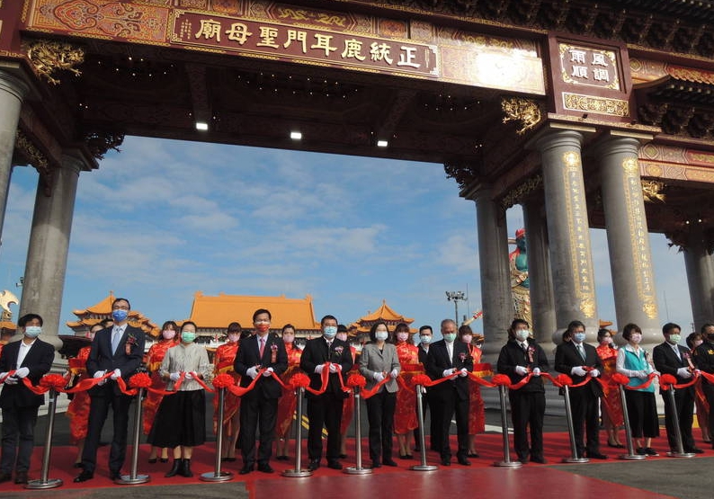 總統蔡英文出席台南正統鹿耳門聖母廟安座39週年暨鹿耳門牌樓落成啟用大典,她致詞時表示,鹿耳門牌樓是台灣宗教廟宇新地標,勢必成為熱門觀光景點,也祈求媽祖讓台南缺水問題能順利解決;同時不忘提醒,民眾若手中還有未用完的三倍券,可持三倍券到台南觀光、來鹿耳門走走。