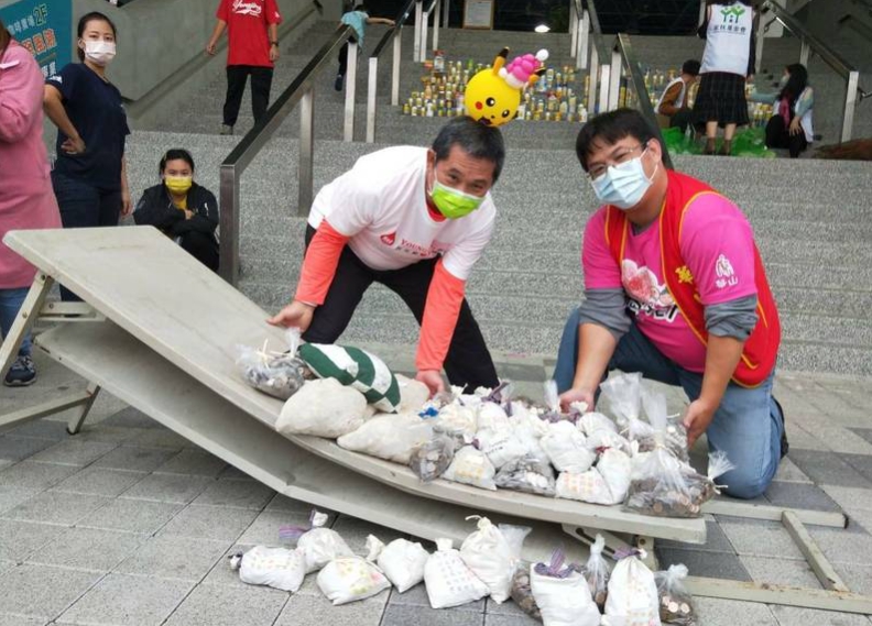 賴義乾說,去年原本預估9萬元,結果募到近19萬元,今年受疫情影響,原評估10萬元,不過一早就出現響應募捐人潮,感到希望,但是萬萬沒想到眾人的愛心,重到可以把桌子壓垮,經盤點硬幣總額共募集約27萬元。